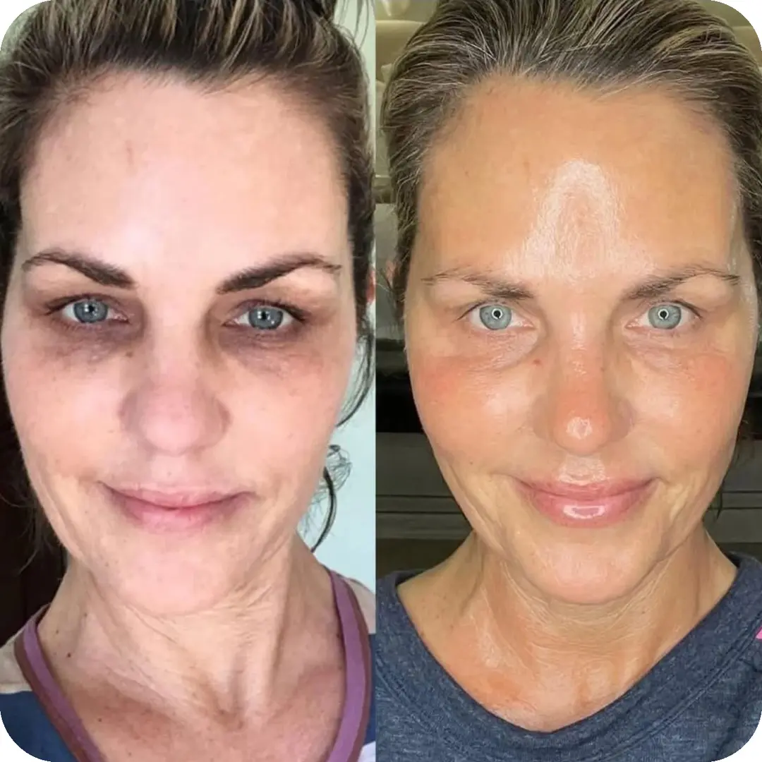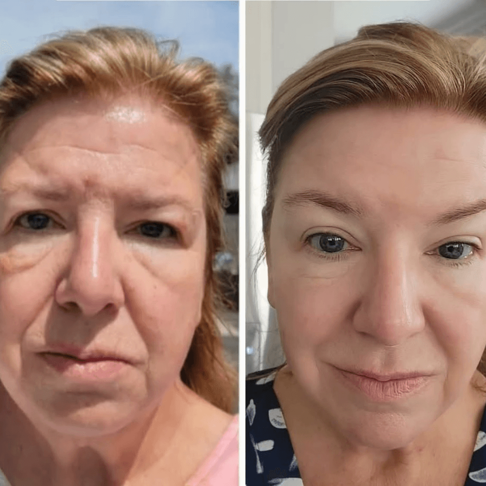 Honestly I see my pictures and I am shocked. I've had zero surgeries, needles or treatments. I found Riman and literally my skin felt different immediately. I started with the Dermatology Line and added the Rad 100 around the 2nd or 3rd month. People stopped me at the grocery store asking what I was doing differently. I'm 52 and my skin hasn't looked this good since my 30s.